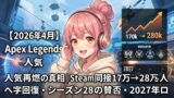 | Steamランキング | 同接ランキング1位(DotA 2、Apex Legendsを抑える) |