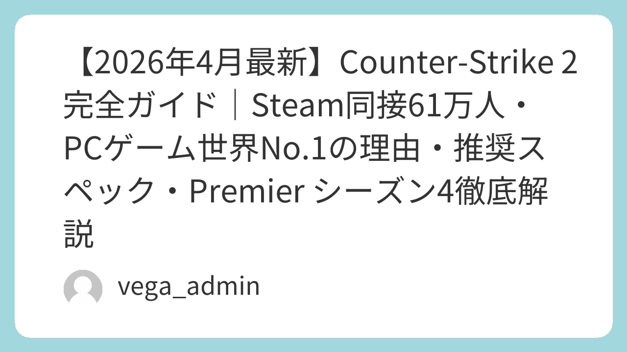 【2026年4月最新】Counter-Strike 2完全ガイド|Steam同接61万人・PCゲーム世界No.1の理由・推奨スペック・Premier シーズン4徹底解説