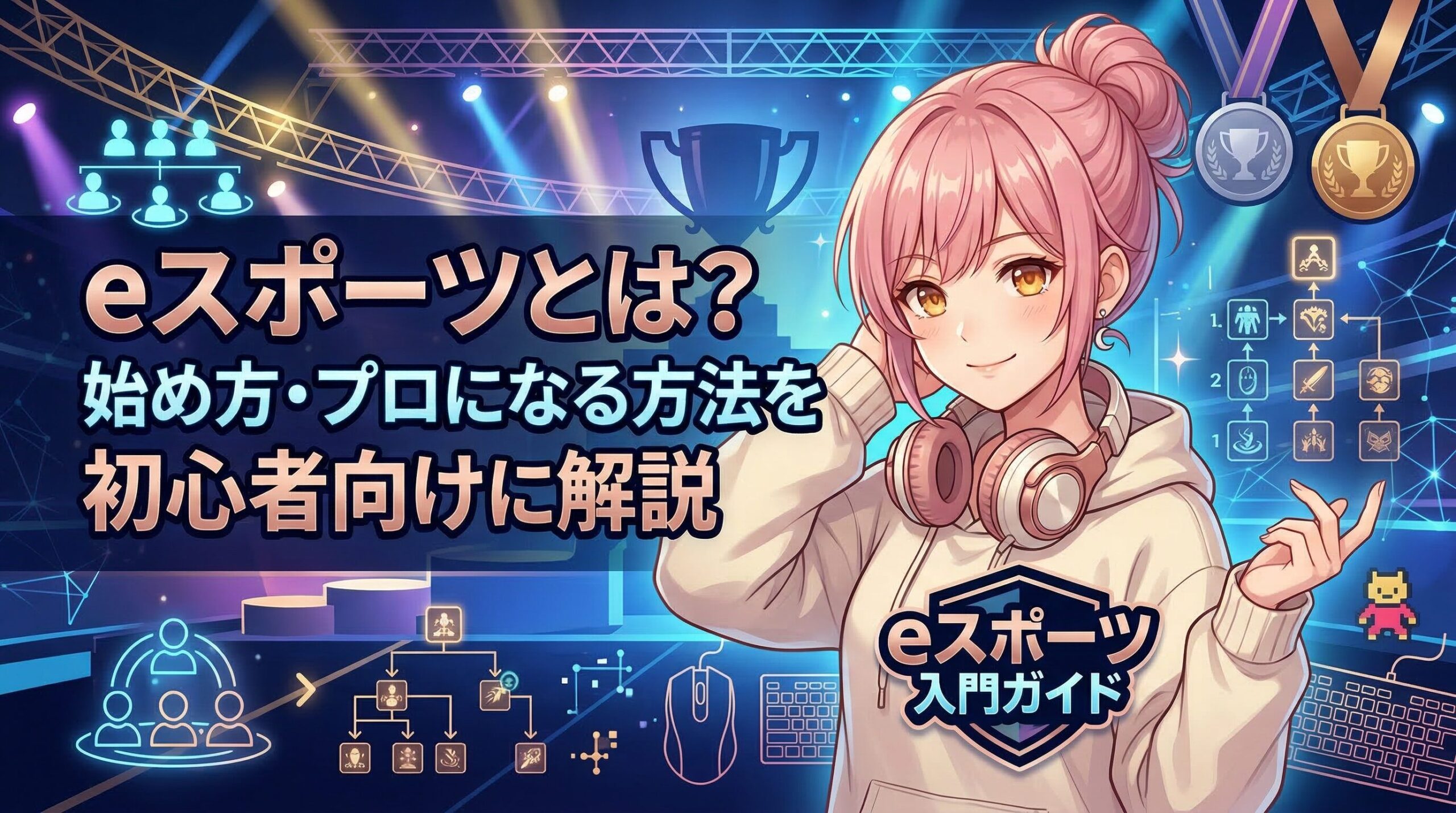 eスポーツは世界的に急成長している競技シーンで、2026年には市場規模が2,000億円を超えると予測されています。本記事では、eスポーツの基礎知識から、プロゲーマーになる具体的な方法まで、初心者向けに徹底解説します。