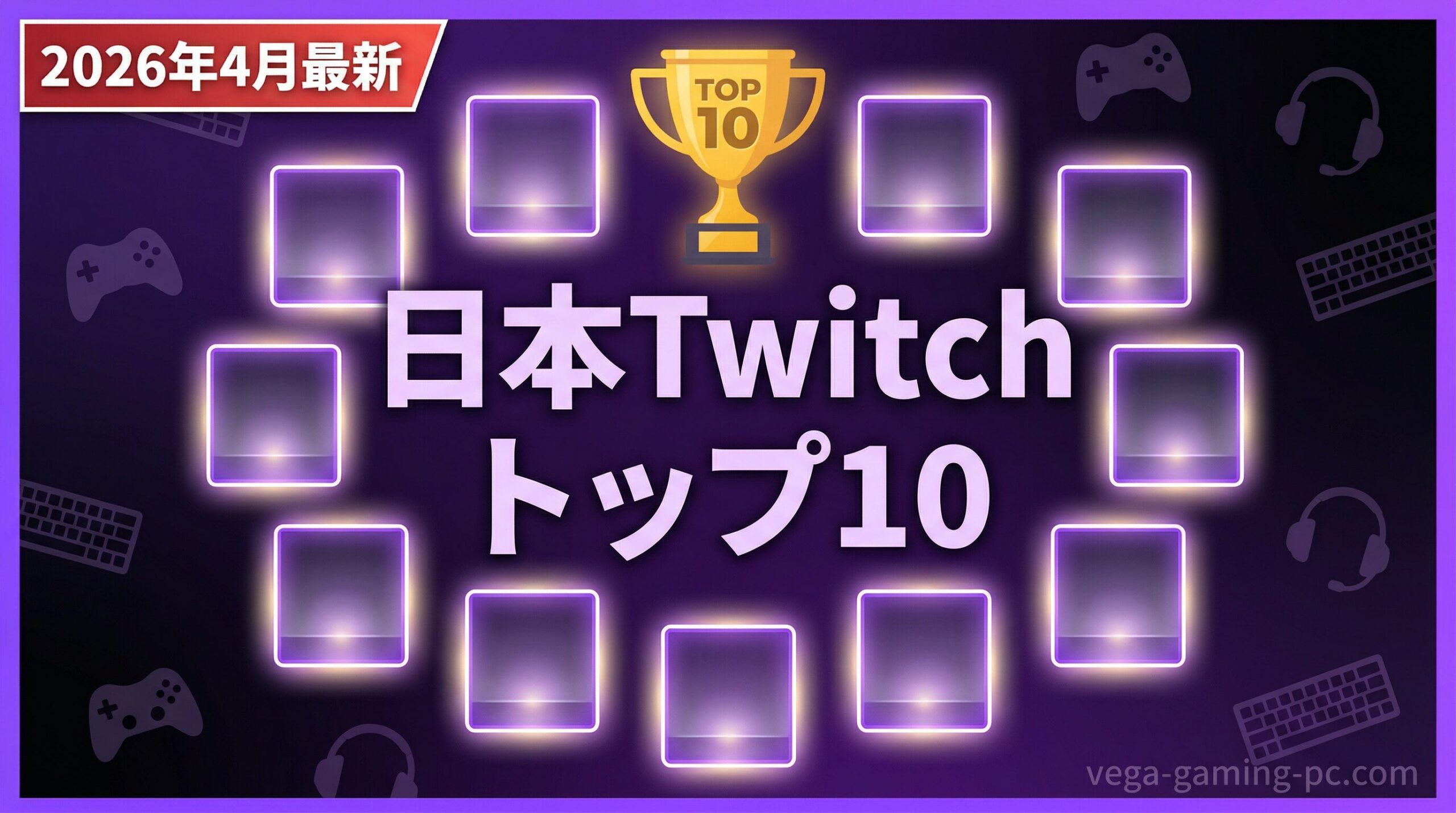 本記事では2026年4月16日時点のリアルタイムデータをもとに、フォロワー数・平均同時視聴者数・総視聴時間の3指標で日本人Twitchトップ10を完全解説する。